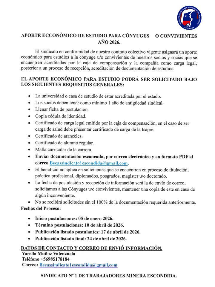 COMENZÓ PROCESO DE POSTULACIÓN AL APORTE ECONÓMICO DE ESTUDIOS PARA CÓNYUGES O CONVIVIENTES 2026