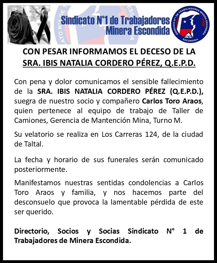 Noticias Obituario COMUNICAMOS CON AFLICCIÓN EL DECESO DE LA SRA. IBIS NATALIA CORDERO PÉREZ, Q.E.P.D. PorHector Araya 5 de diciembre de 2025