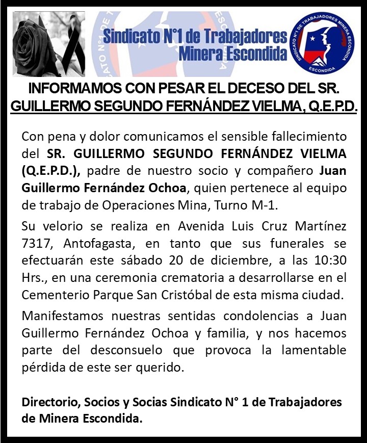 Noticias Obituario COMUNICAMOS CON AFLICCIÓN EL DECESO DEL SR. GUILLERMO SEGUNDO FERNÁNDEZ VIELMA, Q.E.P.D. PorHector Araya 20 de diciembre de 202520 de diciembre de 2025