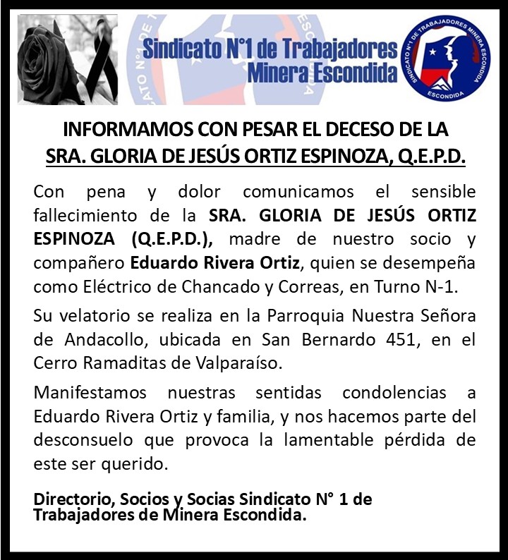 Noticias Obituario COMUNICAMOS CON PESAR EL FALLECIMIENTO DE LA SRA. GLORIA DE JESÚS ORTIZ ESPINOZA, Q.E.P.D. PorHector Araya 31 de diciembre de 2025