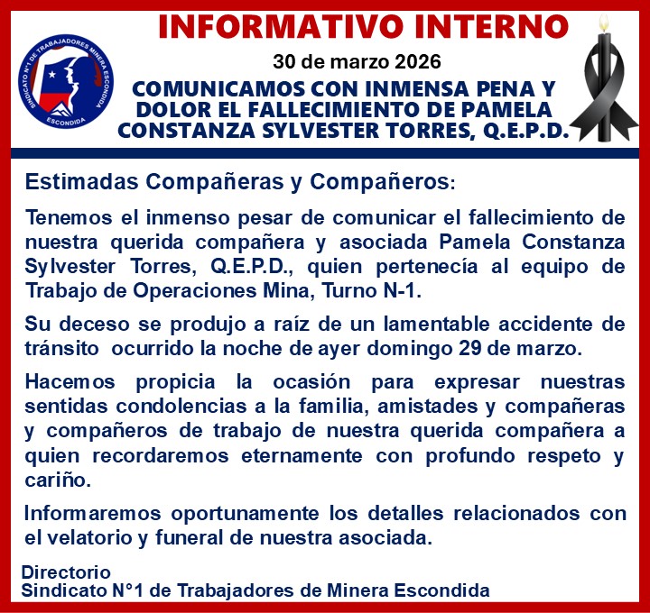 Noticias Noticias destacadas CON GRAN AFLICCIÓN Y DOLOR INFORMAMOS EL FALLECIMIENTO DE NUESTRA ASOCIADA PAMELA CONSTANZA SYLVESTER TORRES, Q.E.P.D. PorHector Araya 30 de marzo de 2026