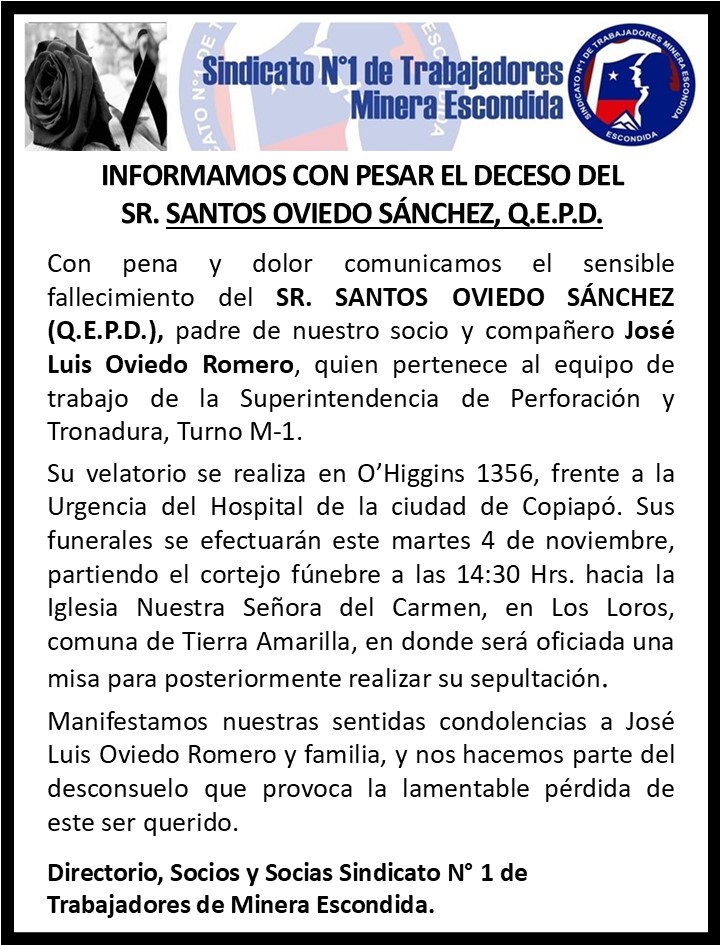 Noticias Obituario CON PESAR COMUNICAMOS EL DECESO DEL SR. SANTOS OVIEDO SÁNCHEZ, Q.E.P.D. PorHector Araya 3 de noviembre de 2025