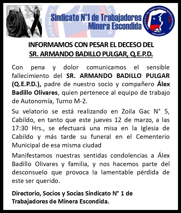 Copyright © 2024, Todos los derechos reservados. Sindicato Nº1 de Trabajadores Minera Escondida.