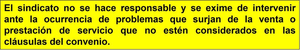 Servicio de alimentos y bebestibles con y sin alcohol, con un 20% de descuento en el total del consumo, ya se el local o para llevar, el que puede ser utilizado todos los días de la semana, sin restricción horaria, identificándose con nombre de los trabajadores y trabajadoras relacionados al sindicato y adscritos a este beneficio.