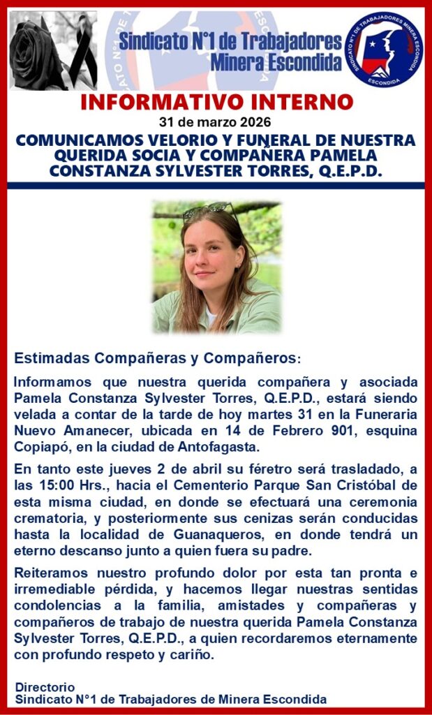 Copyright © 2024, Todos los derechos reservados. Sindicato Nº1 de Trabajadores Minera Escondida.