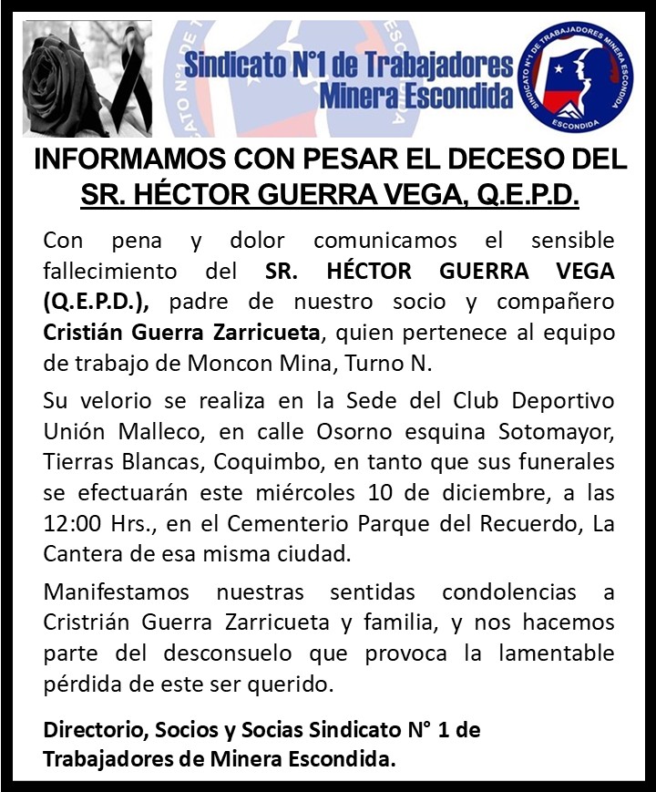 Noticias Obituario INFORMAMOS CON PESAR EL DECESO DEL SR. HÉCTOR GUERRA VEGA, Q.E.P.D. PorHector Araya 9 de diciembre de 2025